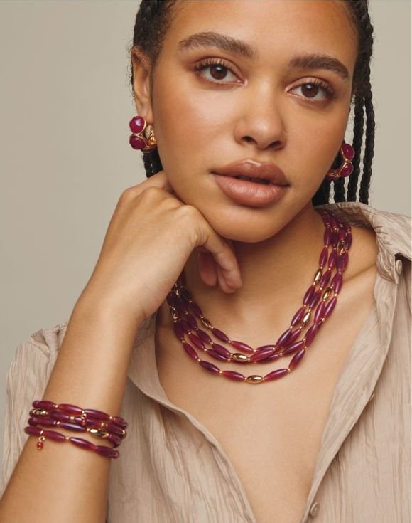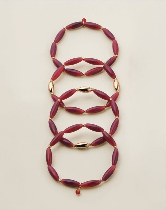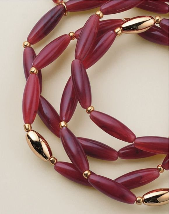 Get into an unapologetically confident crimson mood with a set of four stretch bracelets. Comprised of stunning, crimson-colored beads with shimmering goldtone touches. Add a hint of red to your stack or layer multiples for maximum impact.