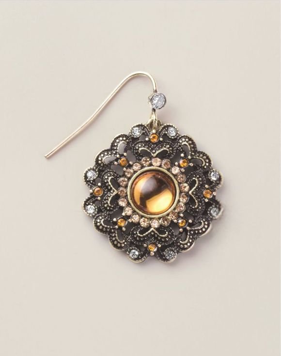 • Burnished filigree detail with golden and chocolate-colored stones