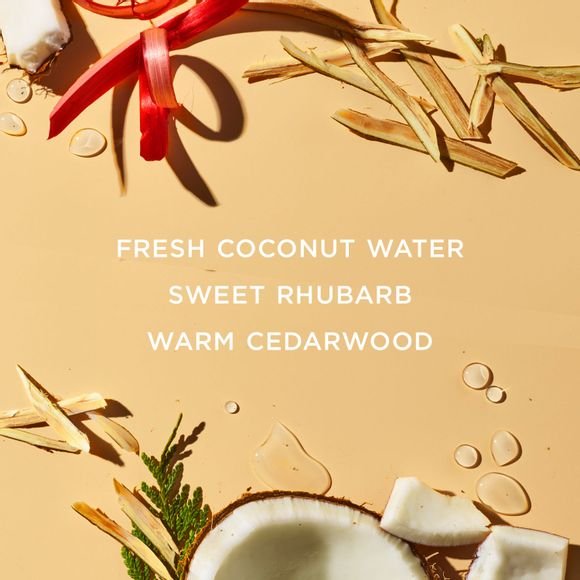 Illuminate your life and awaken your senses with brilliant solar notes. A radiant and warm blend of fresh coconut,sweet rhubarb and warm cedarwood unite in a sun-inspired scent for an uplifting experience that will brighten your path to adventure and beyond.