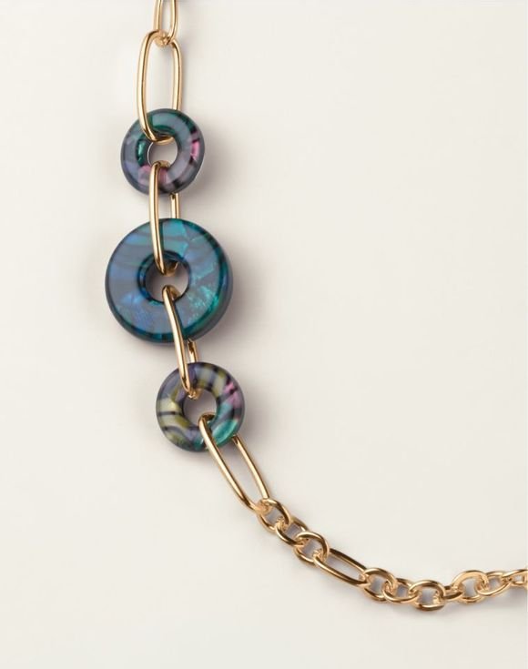 Add a splash of sea splendor to your everyday style. Classic goldtone links are adorned with abalone-like discs for a touch of ocean-inspired flair.