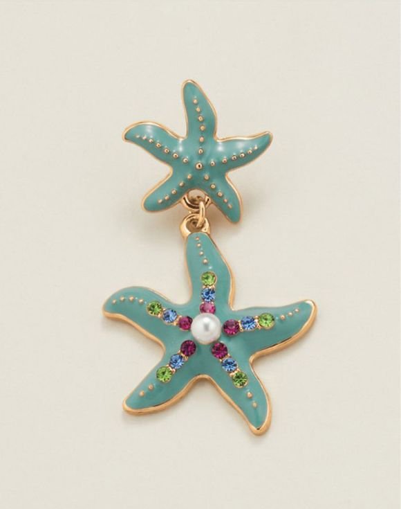 Dive into seaside sophistication with show-stopping motifs. Double turquoise-hued starfish motifs are adorned with sparkling stones and pearly accents for some wow factor.