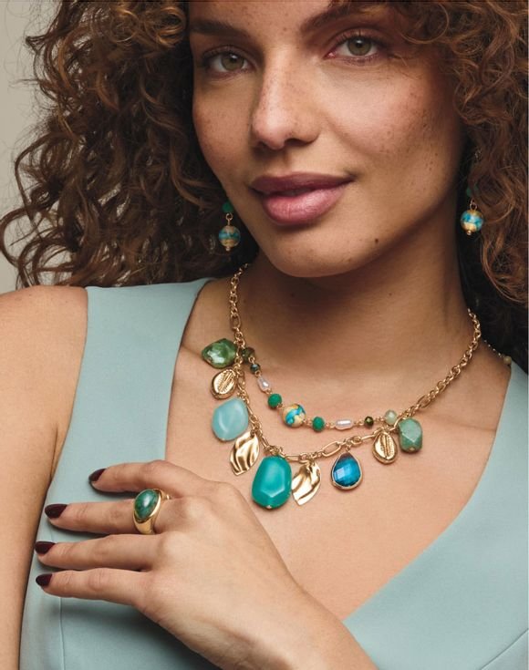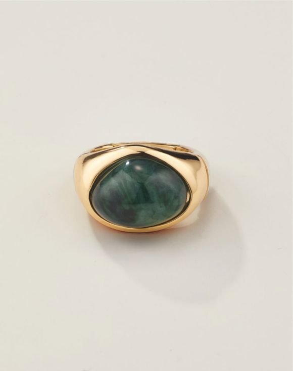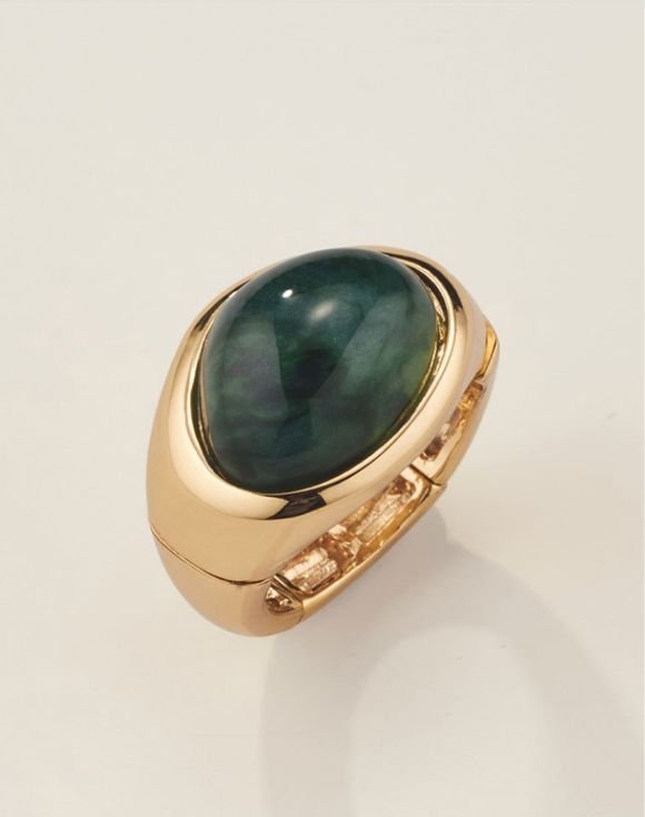 • Green aventurine semi-precious stone set in goldtone