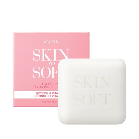 Essential facial bar soaps are infused with cult-fave Skin So Soft signature coconut and soybean oils . Contains retinol which is known to help visibly even tone, brighten and enhance skin clarity. 3.17 oz. net wt.