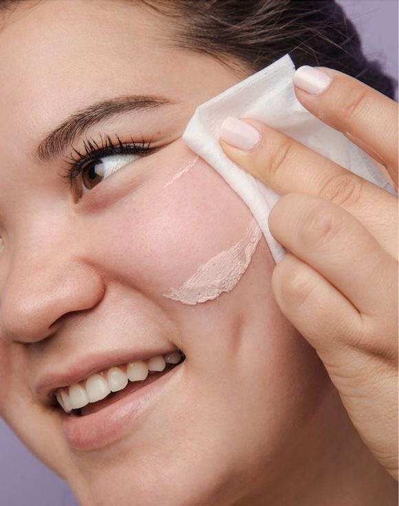 • Gently wipe towelettes over the face and eye area until all traces of makeup and dirt are removed.